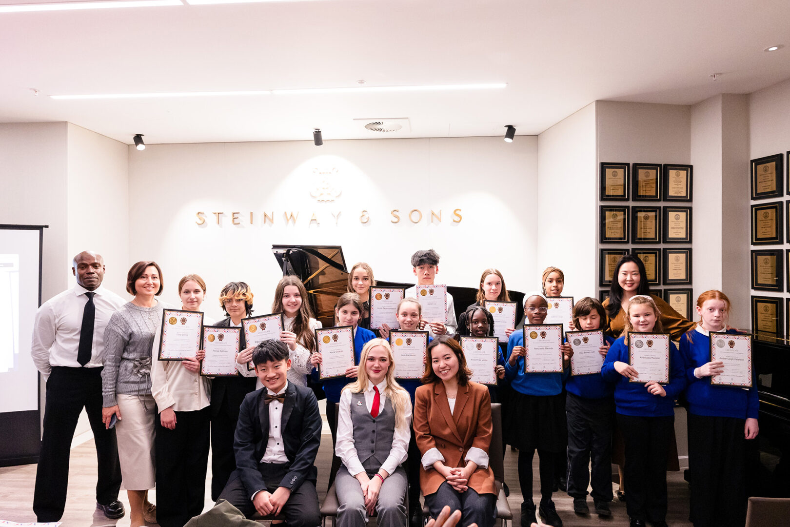 This year’s Season of Excellence international piano competition, held at the UK Steinway Hall of London, was a collaborative event joining Keys of Inspiration and the Manhattan Music and Arts Foundation, and hosted by Keys of Inspiration Teacher of the Year Jung Eun Hong from the PS214K Michael Friedsam School in New York, and Keys of Inspiration Teacher Peter James from the Risley Primary School in London.